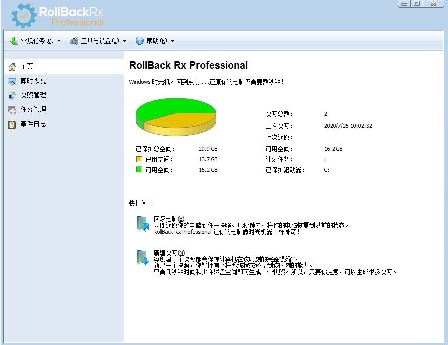 RollBack Rx是PC的即时时间机器。全面的 Windows 系统还原解决方案,使用户和 IT 管理员能够在几秒钟内轻松地将其 PC 还原到以前的任何状态。回滚 Rx 提供了一种管理 PC 的新方法。任何不可预见的事件,如用户错误、病毒甚至拙劣的软件安装,都可以以快速有效的方式轻松、绝对地逆转。